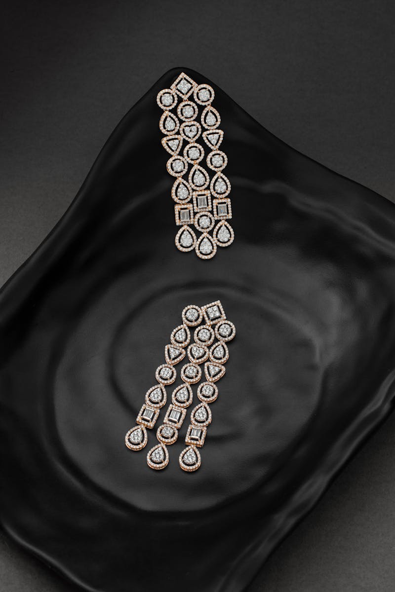Espectaculares aretes de cascada donde esmeraldas en forma de pera y diamantes descienden en tres niveles. Fabricados en oro blanco de 18k. Largo: 5cm. Ideales para eventos especiales.